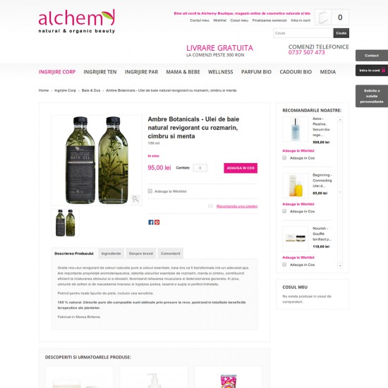 Alchemy Boutique is an online shop where you can find natural and bio cosmetics internationally certified, award-winning products for their purity and effectiveness. The selection of international brands and organic cosmetics certified Alchemy’s brand position in all beauty shops portfolio.